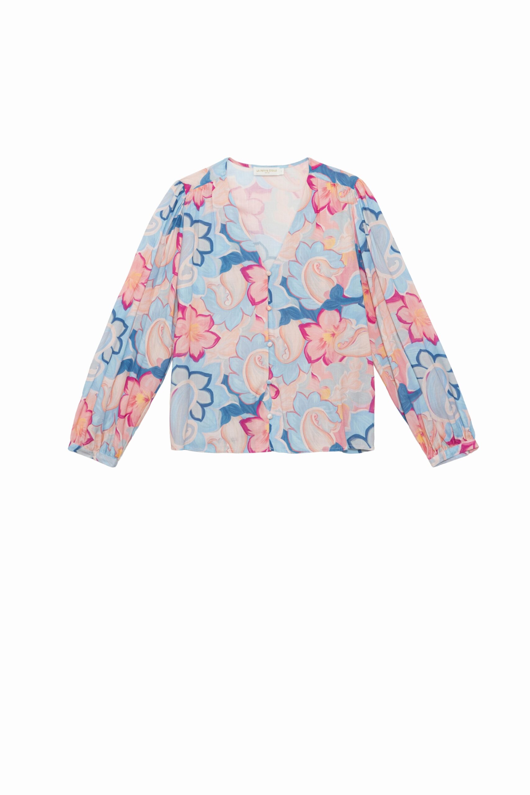 Légère et fluide, la blouse Bianca séduit par sa coupe évasée et son imprimé floral subtil. Confectionnée en 100% rayonne, elle offre un tombé souple et agréable. L’encolure en V, les manches longues à fentes boutonnées et le boutonnage devant avec boutons recouverts soulignent son élégance raffinée. Les fronces aux épaules apportent une note de volume féminine et délicate.
