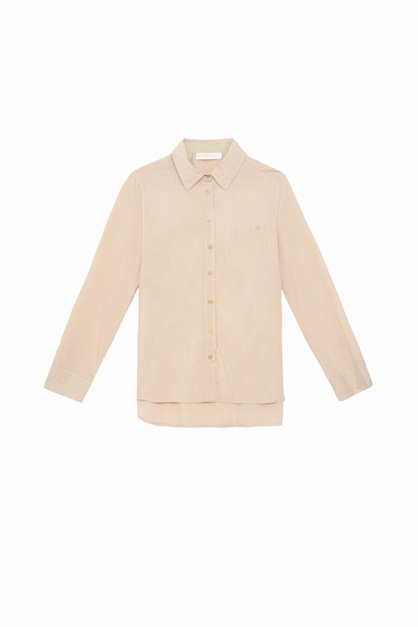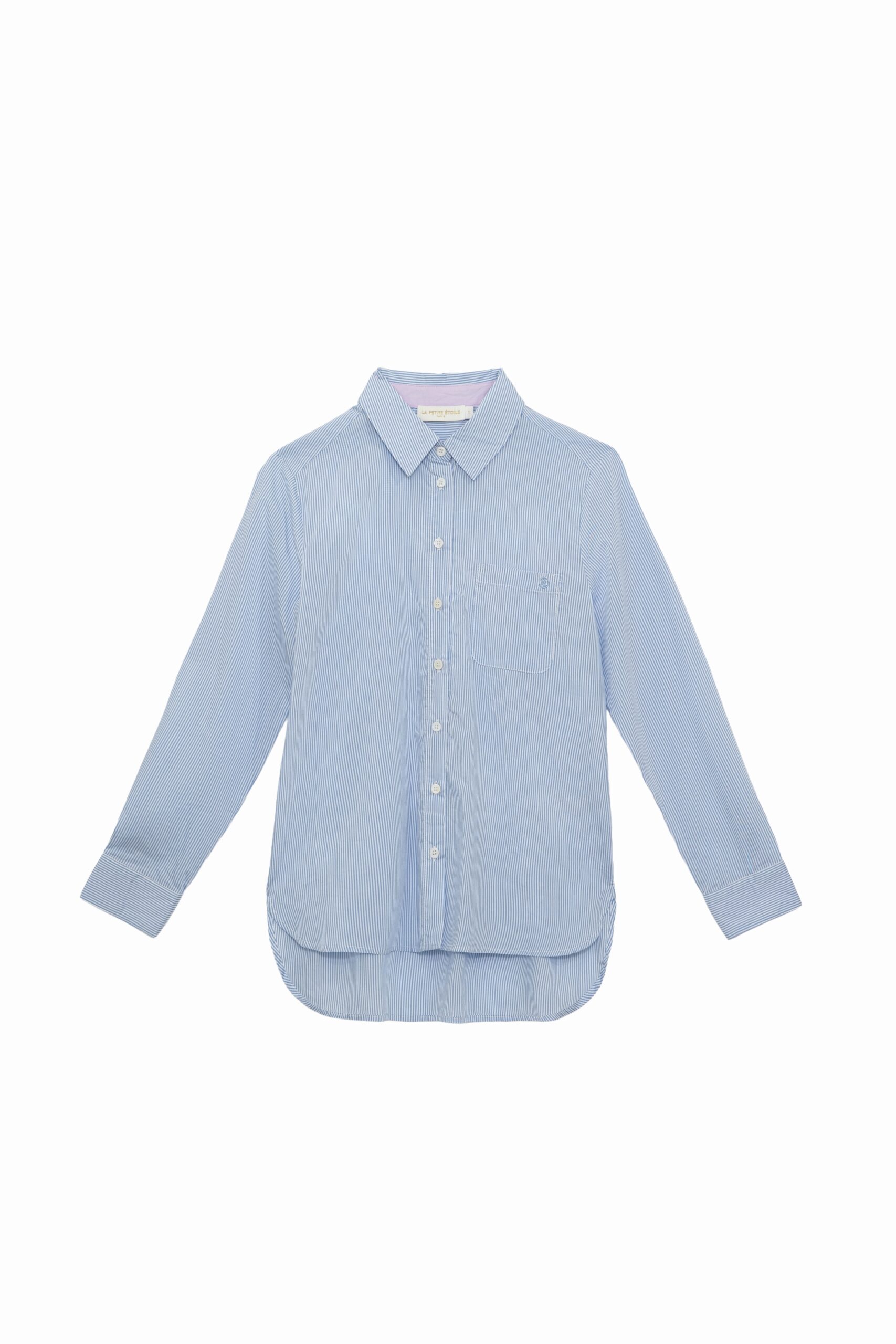 Le chemisier Carla mise sur une coupe droite en coton, rehaussée de poignets réversibles et de plis au dos.