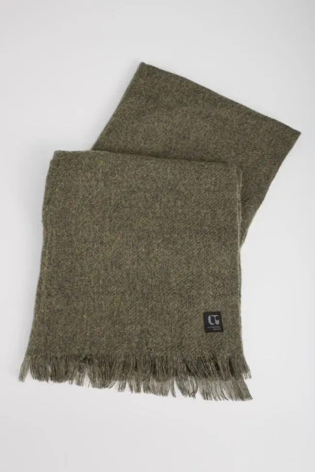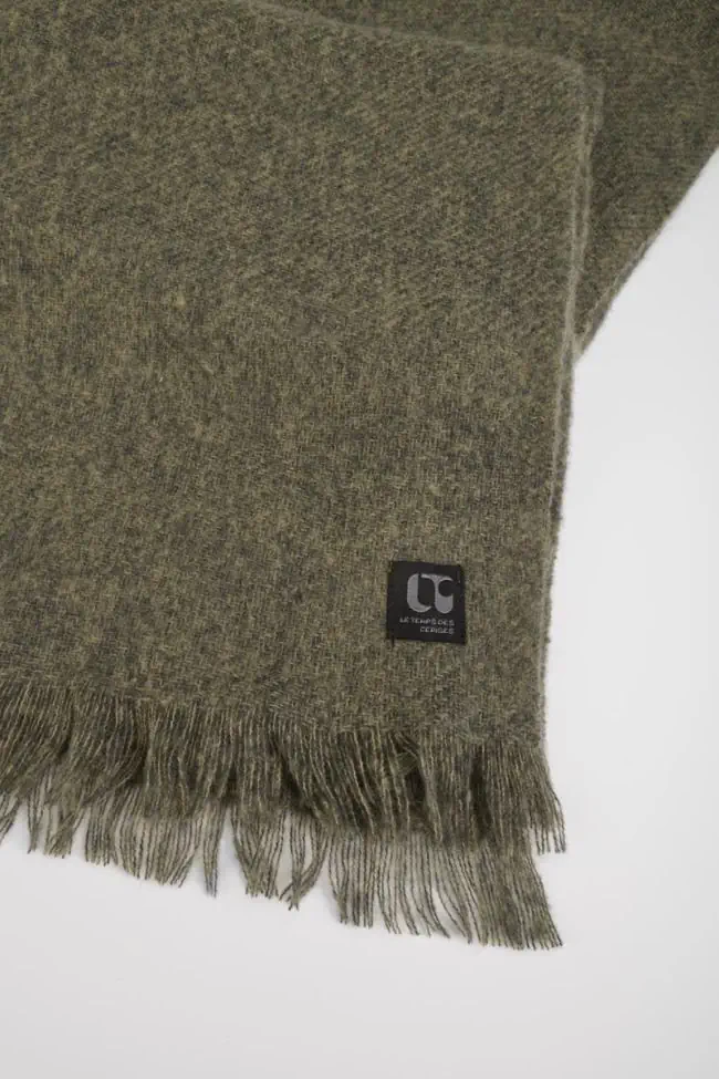 Écharpe kaki à bords francs, agréable à porter.