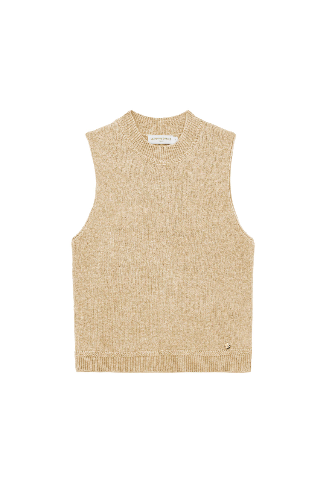 Manda, le pull sans manches en maille, mise sur une coupe minimaliste relevée par des finitions soignées.