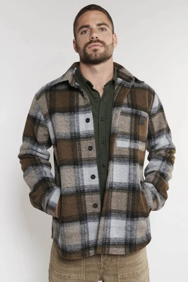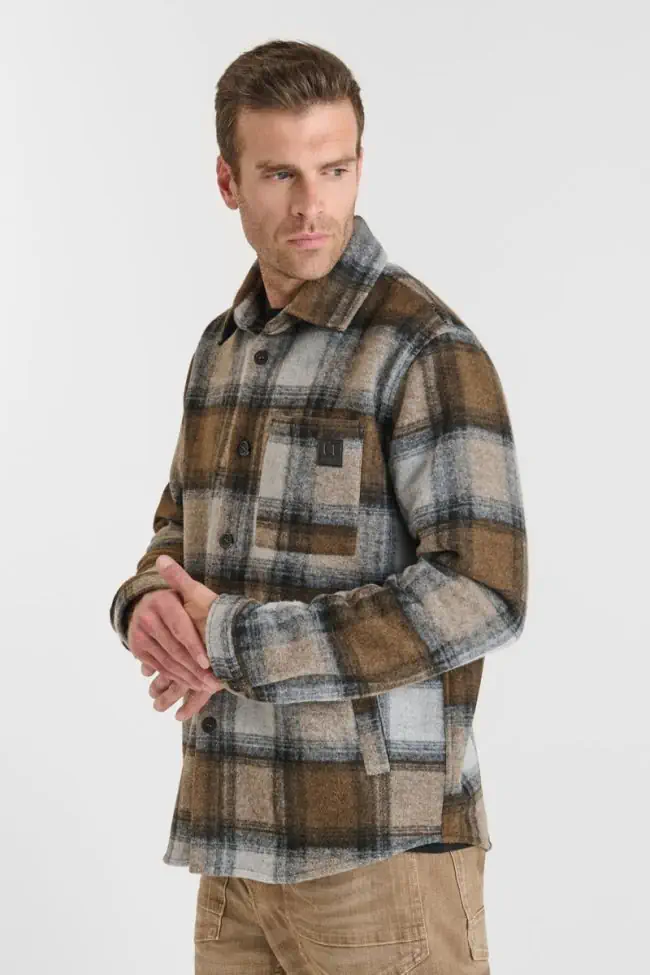 Veste à carreaux, confortable et chaude, poche poitrine avec patch monogramme.
